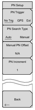 Manual PN Offset: Press to manually set the PN offset. Use the arrow keys, rotary knob, or numeric keypad to choose an offset, then press the rotary knob or the