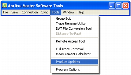 Click the “Check for Updates” button to obtain the latest list from the Anritsu Web site. This updates the Product Updates screen.Copy the zip file to the MST folder. The default location is