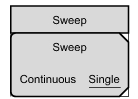 Sweep Menu Key Sequence: Shift > Sweep (3) key Power Meter Sweep Menu Sweep Single/Continuous This submenu key toggles between continuous sweep and single sweep. In single sweep mode, the results of a sweep are displayed on the screen while the instrument awaits a trigger event to start a new sweep.