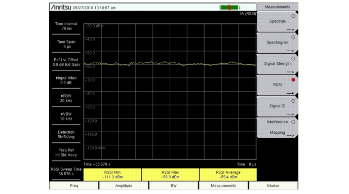 1. Press the Measurements main menu key, then press the RSSI submenu key to bring up the RSSI display. Press the RSSI key again to open the RSSI menu.