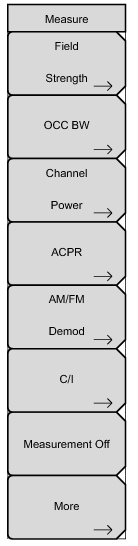 Opens the “OCC BW Menu”. Select either % or dBc method of occupied bandwidth measurement.
