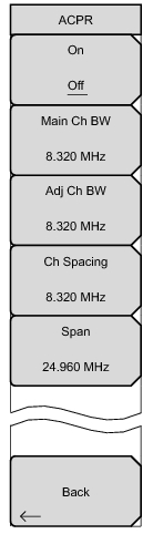 Sets the span for ACPR measurement. Use the keypad, the directional arrow keys, or the rotary knob to enter the span.