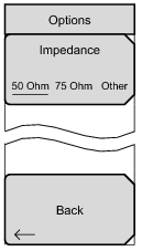 Select either 50 ohm, 75 ohm, or Other impedance value. Selecting 75 ohm selects the 7.5 dB loss of the Anritsu 12N50-75B adapter. For other adapters, select Other and enter the appropriate loss.