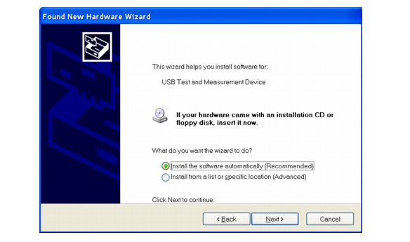 The USB 2.0 Mini‑B device connector can be used to connect the MS272xC directly to a PC. The first time the MS272xC is connected to a PC, the normal USB device detection by the computer operating system takes place. The CD‑ROM that is shipped with the instrument contains a driver for Windows 2000, Windows XP and Windows Vista. The driver is installed when Master Software Tools is installed. Drivers are not available for earlier versions of the Windows operating system. During the driver installation process, place the CD‑ROM in the computer drive and specify that the installation wizard should search the CD‑ROM for the driver.