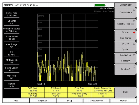 Mobile WiMAX Demodulator EVM versus Sub Carrier Measurement