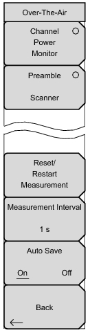 Displays the Channel Power (RSSI) value over a variable time period that is specified with the Measurement Interval submenu keys.