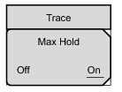 Press this submenu key to toggle Max Hold On or Off. It applies to Spectrum view and EVM vs Sub Carrier view. This function allows the spectrum trace to hold its peak value from trace to trace. This helps in capturing a representative spectrum of a burst RF signal, such as WiMAX. All Max Hold operations show two traces. One trace is a max hold value, and the other is a live trace with the current measurement results.