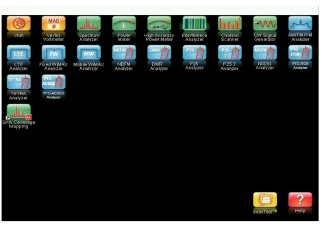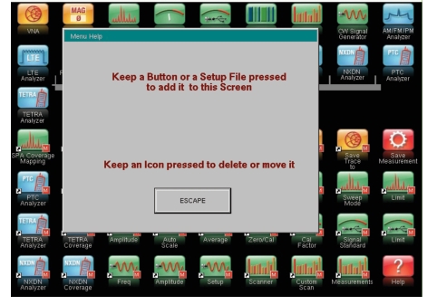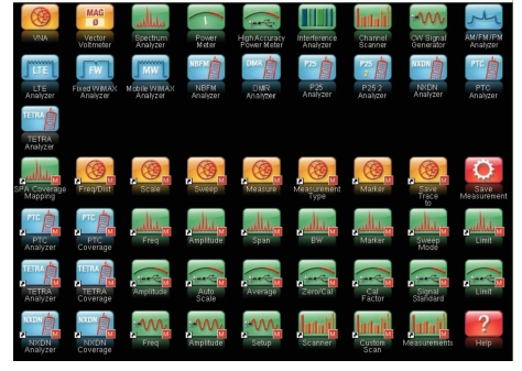 Press this key to display a grid of shortcut icons for installed measurement modes and any user‑selected menus and setup files that may have been added.