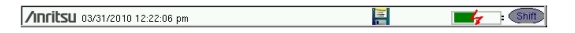 Pressing the Shift key followed by pressing a number key executes the function that is indicated in blue text above the number key. When the Shift key is active, its icon is displayed at the top‑right of the measurement display area near the battery charge indicator.