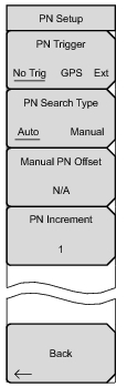 4. Press the PN Search Type submenu key to toggle between Auto or Manual. In Auto mode, the instrument automatically detects the strongest pilot, while in Manual mode it searches only for the specified PN.