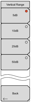 Modulation Analysis Delay Profile Vertical Range Menu Press one of these submenu keys to set the y‑axis scale for both Delay Profile graphs.