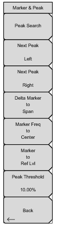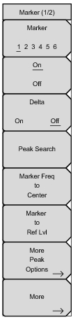 Sets the frequency counter mode for all markers. Marker frequency values are normally limited in resolution to individual display pixels. Each pixel may represent multiple frequencies. Using Counter Marker in association with Marker to Peak will result in the exact frequency of the peak within the pixel to a resolution of 0.001 Hz.