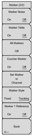 This key changes the behavior of the reference markers. If Fixed is selected, reference markers stay at the amplitude they were at when the associated delta marker was turned on. If Tracking is selected, the amplitude of the reference marker changes as the signal amplitude is changed. Note that the reference marker tracks the amplitude, not the frequency of a signal.