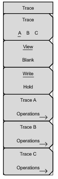 To access the functions under the Trace menu, press the Shift key, then the Trace (5) key. The instrument is capable of displaying up to three traces, one with live data, and the other two either with stored data or trace math data.