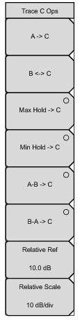 Subtracts the value of Trace A from Trace B and places the results in Trace C. This function is very useful for observing the changes in values of live Trace A compared to a trace stored in Trace B. When trace math is active, a relative scale shows on the right side of the graph, and is associated to Trace C. This allows the user to optimize the display of Trace C without affecting the display of Traces A and B.