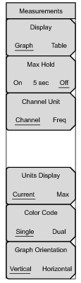 When Graph is selected in the Display submenu, this key toggles the graph orientation between vertical and horizontal.