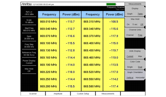 The current power units are displayed at the bottom of the channels, or the maximum power is displayed (activated only when Max Hold is set to On or 5 sec).