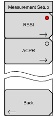 Press this button to select Adjacent Channel Power Ratio (ACPR). ACPR is the ratio of the power of the adjacent (lower and upper) channel to the main power channel. Press the ACPR key again to set the main channel bandwidth, adjacent channel bandwidth, channel spacing, adjacent channel offset and the power level qualifiers.