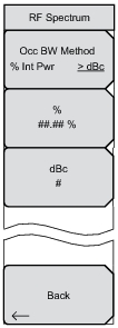 Press to select a method of presenting the occupied bandwidth, either by percent of the total received signal power or by an amount greater than the dBc that is set with the dBc submenu key. The selection toggles through the choices, and the current setting is underlined on the submenu key.
