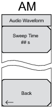 Audio Waveform AM Menu Key Sequence: Measure or (Shift + 4) > Audio Waveform > Audio Waveform Audio Waveform AM Menu Sweep Time Press to set the sweep time. If you use the numeric keypad to enter a value, then the submenu keys change to Time in units of s, ms, µs, ns, or ps. Back Press to return to the Measurements menu.