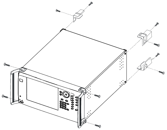 Instruments that are ordered from the factory with a rack mount option arrive with the rack mount hardware pre-installed. Alternatively, the rack mount option may be ordered at a later time and installed whenever required by the user. The general procedure to install the rack mount kit is described below: