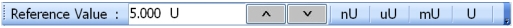 ![]() | SCALE (Linear Magnitude) Menu This menu is available when TRACE FORMAT is set to Linear Magnitude. Button units are set to: • Button Units: U (Units) Resolution (Units/Div) Select displays the Resolution (Units/Division) toolbar with units of units per division. Resolution (Units/Div) Field Toolbar ![]() Reference Value (Units) Select displays the Reference Value (Units) toolbar. Reference Value (Units) Field Toolbar ![]() Reference Position (Number) Select displays the Reference Position toolbar. Reference Position (Number) Field Toolbar ![]() Additional Common Buttons |