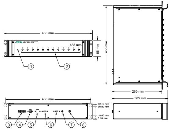 The standard MS27103A Remote Spectrum Monitor requires a user supplied DC power supply with voltage rating of ±20 VDC to ±70 VDC with minimum power output of 11 W. Option 110 replaces the DC connector screw terminal with an internal AC-DC supply with a 3-pin line receptacle.