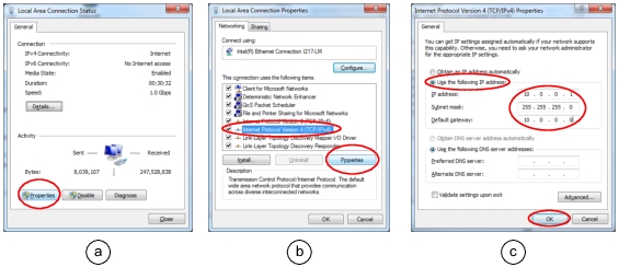 The following example illustrates how to set up Windows 7 for a static IP address. Refer to your operating system documentation or consult with your network administrator for other Windows versions or operating systems.