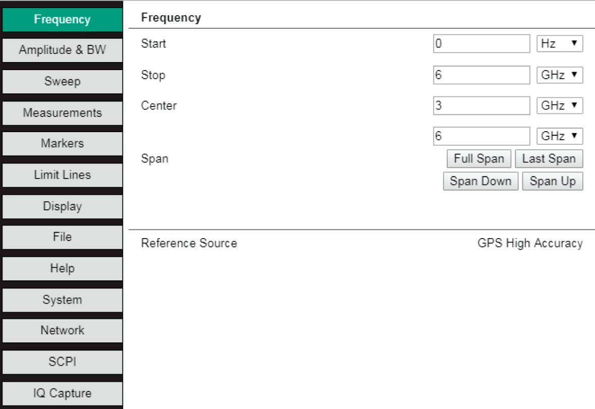 • Full Span: Sets the span to cover the entire tunable spectrum of the instrument.