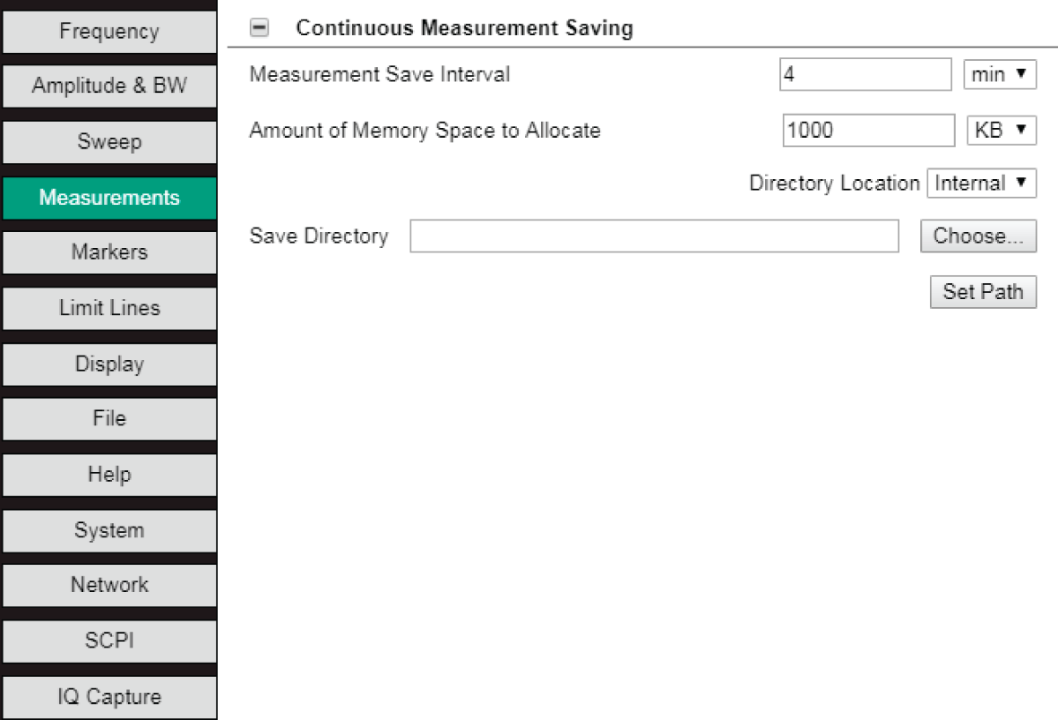 • Measurement Save Interval: This is the frequency that measurements are saved. If the interval is set to 5 minutes, it will save every 5 minutes.
