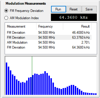 Run Run the measurement selected. Reset Reset the measurement result display. Save Save the measurement result display. | |