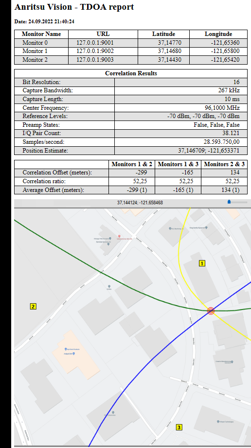 9. Click the Report button to show measurement details as shown in Figure: TDoA Report.