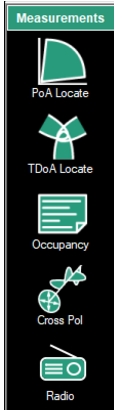 - ![]() | PoA Locate Locate sources using PoA. See PoA Locate (Option 401). TDoA Locate: Spectrum analyzers positioned in a triangular pattern perform TDoA to identify a stationary signal’s longitude and Latitude coordinates. See TDoA Locate (Option 401). Occupancy: Provides tools to set power threshold levels to determine whether a given frequency channel is to be considered occupied. See Occupancy. Cross Pol: Cross Polarization measurement monitors two antennas measuring the same signal, one turned 90 degrees relative to the other. See Cross Polarization. Radio The Radio Capture file contains the AM/FM Measurements for the spectrum analyzer with Option 400 installed. Displays AM/FM streaming audio. See Radio (Option 400). |