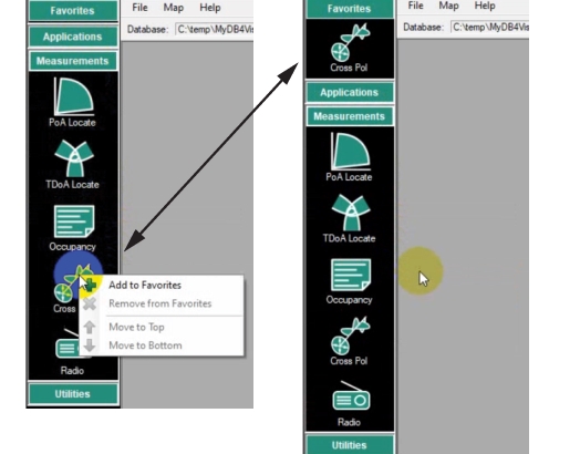 - ![]() | DB Browser View details and load Vision databases for use in Vision Monitor, PoA Locate and Trace Viewer. See DB Creator. Trace Acquire Stores traces at set intervals, stores results in user location, and provides email alerts when mask violation occur. See Trace Acquire. DB Creator Create a database consisting of base stations, channel setup definitions, and mask definitions for use by Trace Monitor and Vision Acquire. See DB Creator. Settings Database maintenance and system utilities. The Settings and Control Panel provides the user interface tools for signal monitoring. See Settings. |