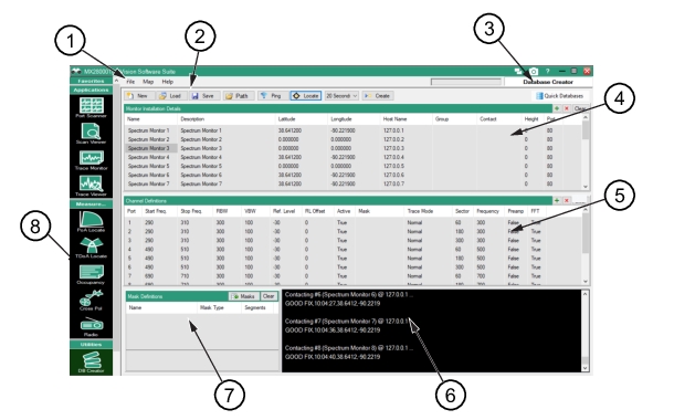 1. Menu Bar 4. Monitor Installation Window | 8. Database Creator Icon |