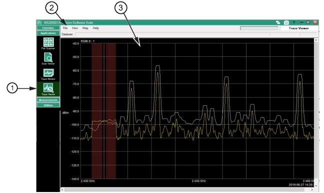 View | View Mode: Opens the context menu shown below. ![]() Trace View: Set all windows to Trace View mode. Toggle individual windows to spectrogram view by clicking on their displayed graph. Spectrogram View: Set all windows to spectrogram view mode. Toggle individual windows to trace view by clicking on the graph. Live View: Set all displayed channels to Live View. Synchronize Traces Synchronize all displayed channels. Scrolling through one channel will scroll through all displayed channels in time. Arrange Windows Arrange and resize all displayed channel windows to fit to the main Trace Viewer window. |