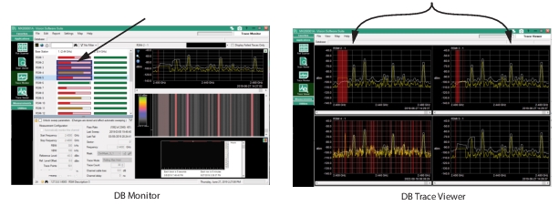 Figure: View Multiple Traces. You can view multiple traces from the Trace Monitor user interface by shift-clicking the Base Station RSMs to view in the Trace View screen. Below Base Station RSM 2 through RSM 4 have been highlighted in the Trace Monitor user interface. Click the Trace View to display the four traces.