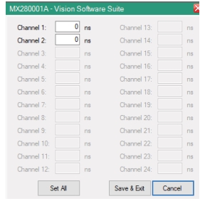 ![]() | Edit Channel Delays (For TDoA) Opens a User Interface for entering channel delays. ![]() |