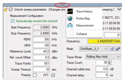Measurement menu tabs are described below in