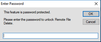 To make the Delete button inactive and unavailable, select the Lock Remote File Delete command from the File menu. The first time this command is selected, the Enter Password dialog is displayed as shown in Figure: Enter Password. Type a password and click OK. The Delete button becomes unavailable to other users.