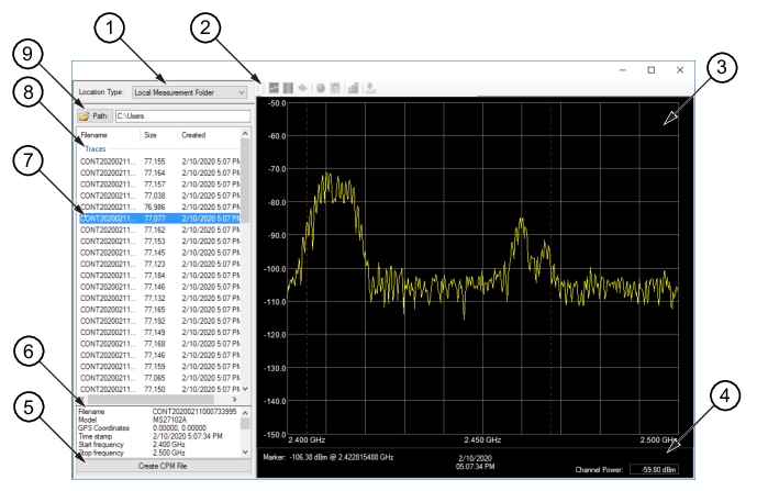 User selected view. Click or type a path to navigate to the folder that contains spectrum analyzer files.