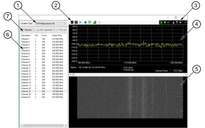 Shows the Spectrogram view of the selected CPM file.