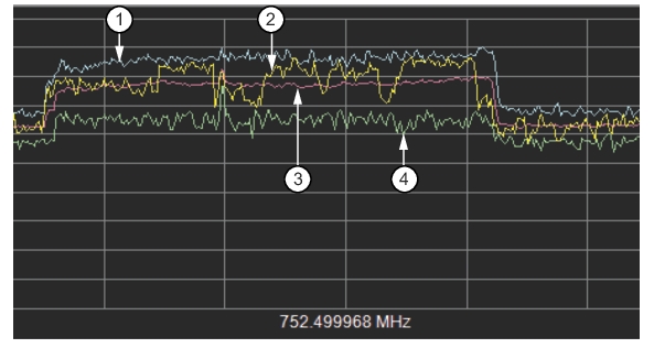Figure: All Traces View. The plot displays all the single spectrum analyzer sweep traces saved and then superimposed in one display.