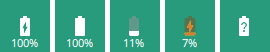 The battery icon shows the current battery charge percentage and indicates that the battery is charging with a lightning bolt. A question mark (?) indicates that the battery is not installed or has a malfunction. Selecting the icon opens the battery information dialog. Refer to Battery. | |