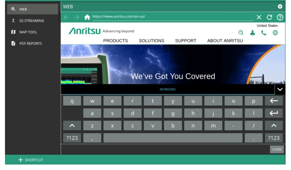 By default, the WEB tool launches the Anritsu company website. It allows you to search for any information related to your product and/or browse the Internet.