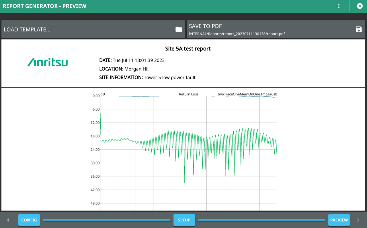 3. Select SETUP button in the bottom to add setup or trace files in REPORT GENERATOR - SETUP window.