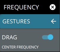 - ![]() | DRAG Toggles the touchscreen drag feature on or off. When toggled off, the center frequency will not change when dragging the spectrum display. This can be useful when dragging markers. Note that the Drag feature can also be toggled on/off by touching the lock icon under the display. |
