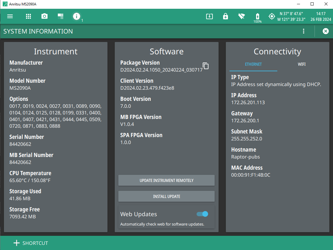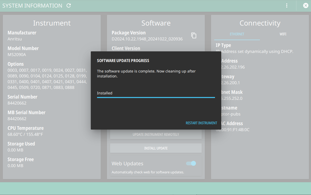 Note | Update Instrument Remotely option will be disabled on instruments installed with Secure Data Option 7. |