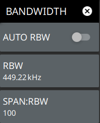 2. Toggle AUTO RBW off to manually change values. If using Auto, refer to the following sections.
