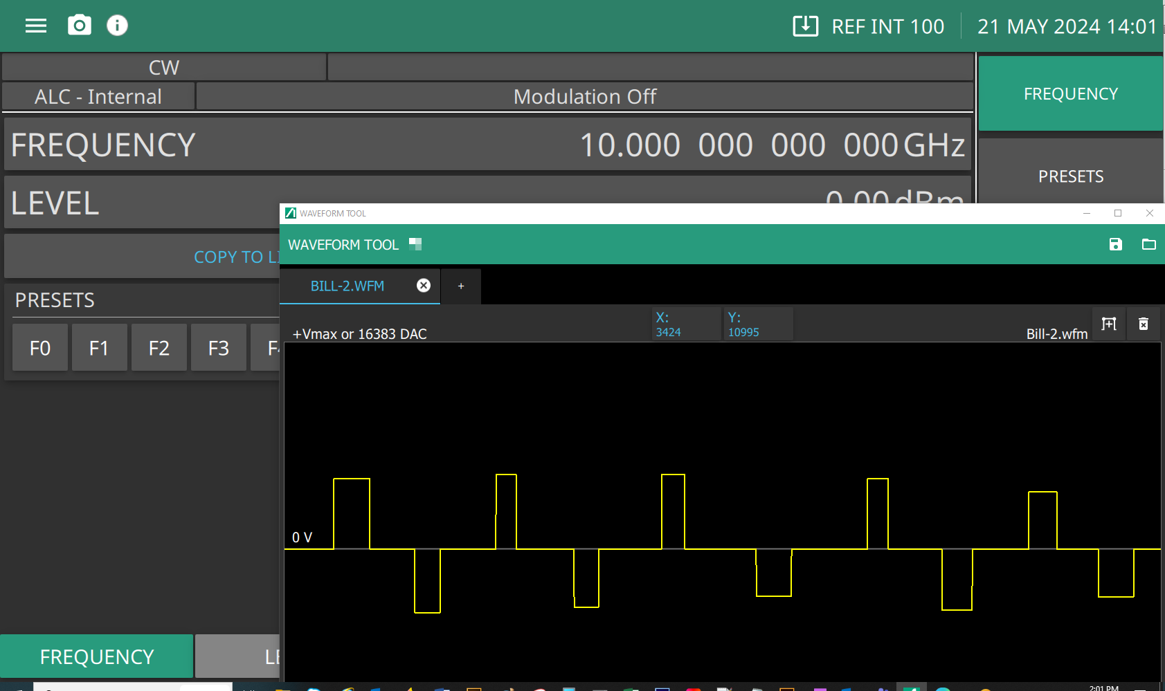Press the OPEN EXTERNALLY button provides the user a tool to detach the Waveform Generator screen and move to another monitor and allow the user to continue to use the Rubidium UI as shown in